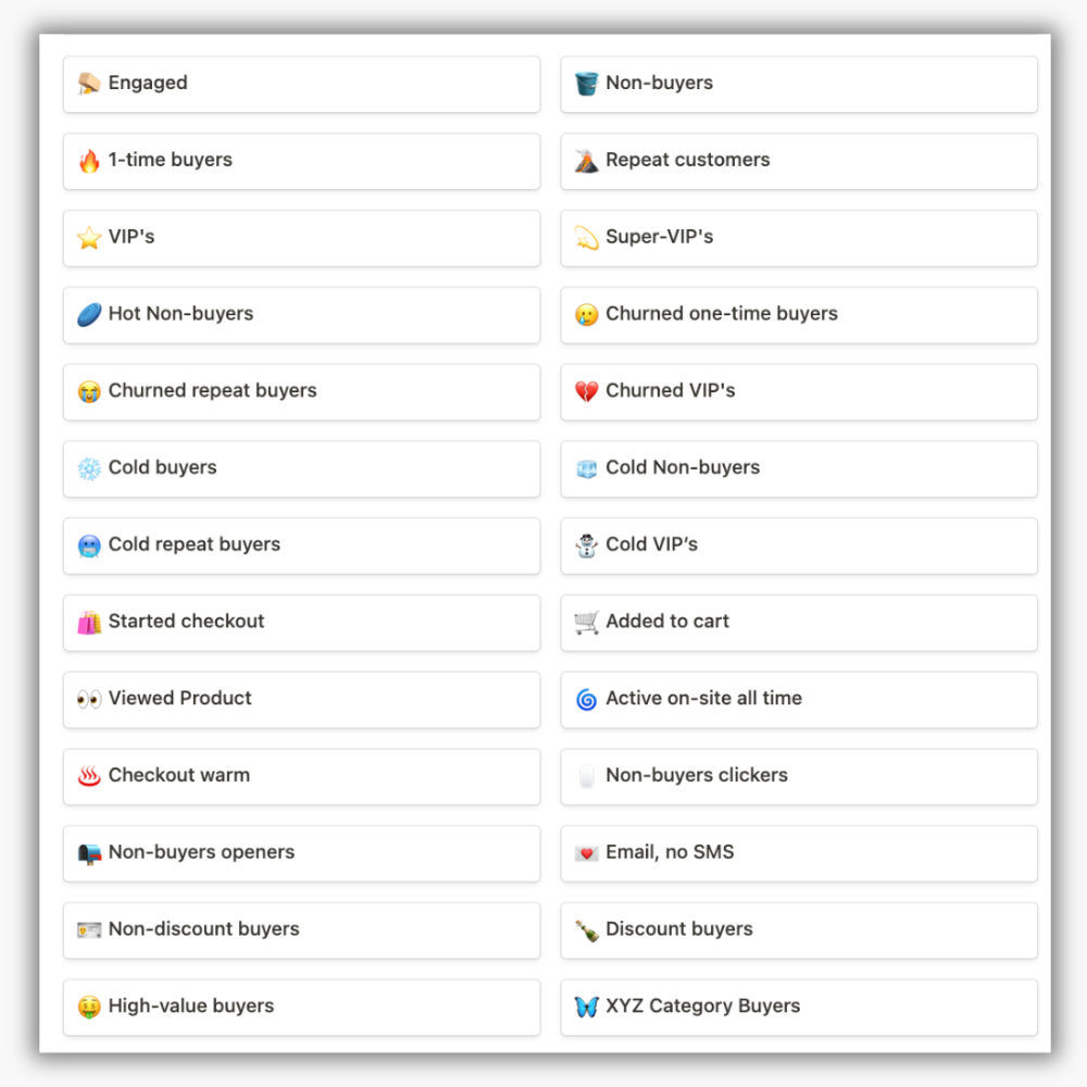 This was helpful as I will be switching back to Klaviyo and need this segmentation
